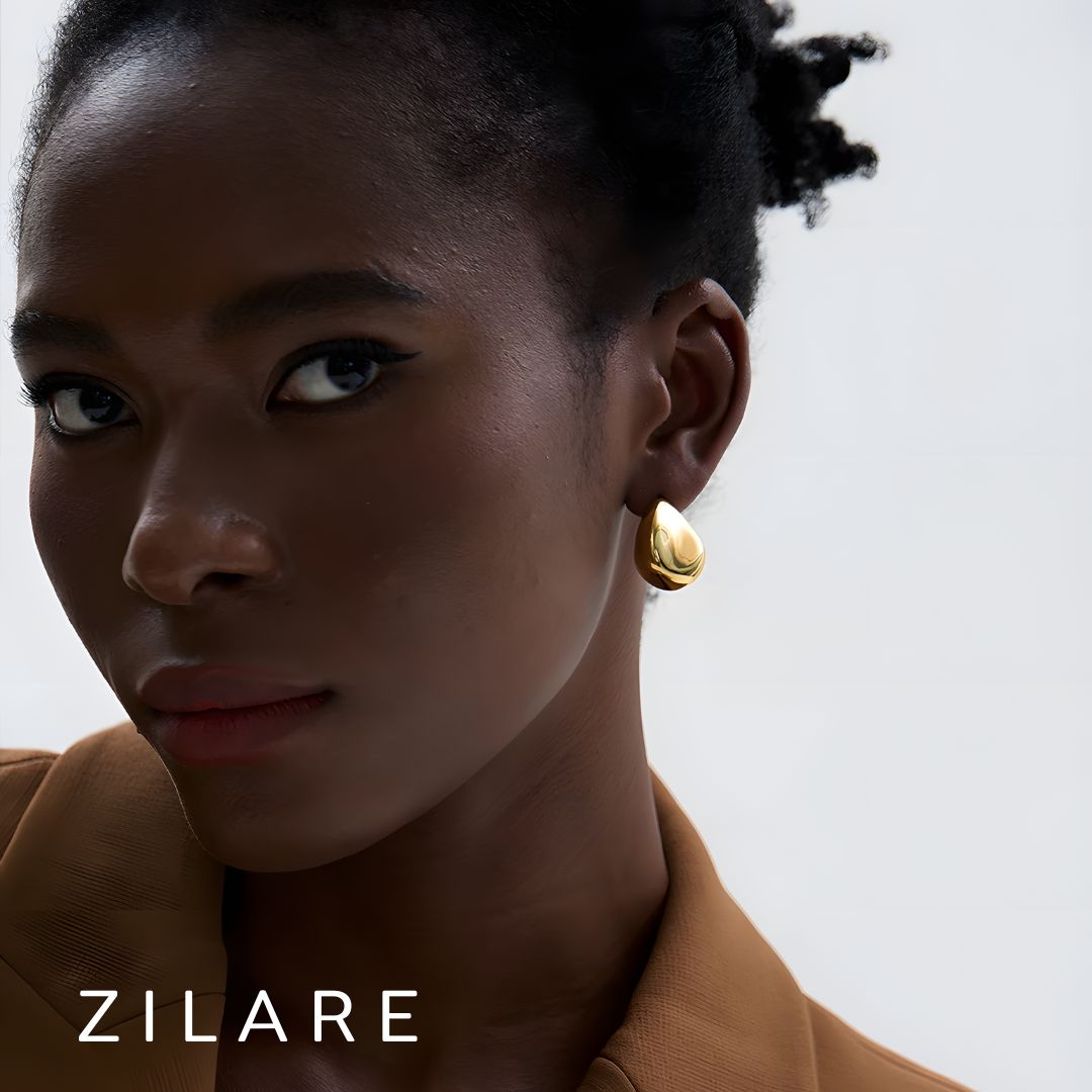 Aretes dorados bañados en oro 18k con forma de gota lisa. Un diseño minimalista y sofisticado que aporta elegancia moderna y distinción en cada detalle.
