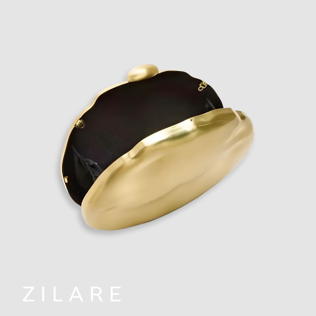 Bolsa de mano mujer dorada con cadena y diseño rígido Dora