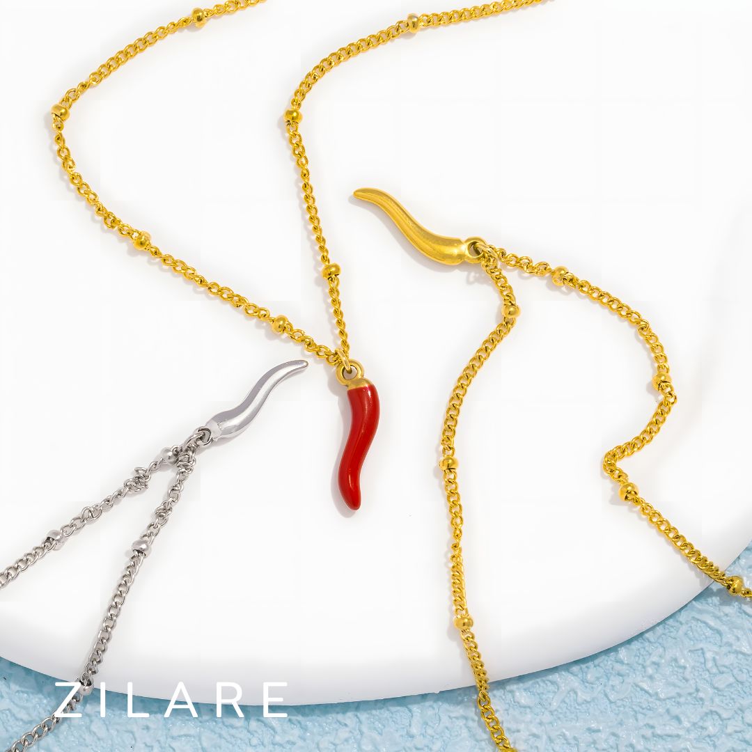 Un collar único con dije en forma de chile rojo que refleja fuerza y estilo. Su diseño moderno y divertido lo convierte en el accesorio ideal para cualquier ocasión.