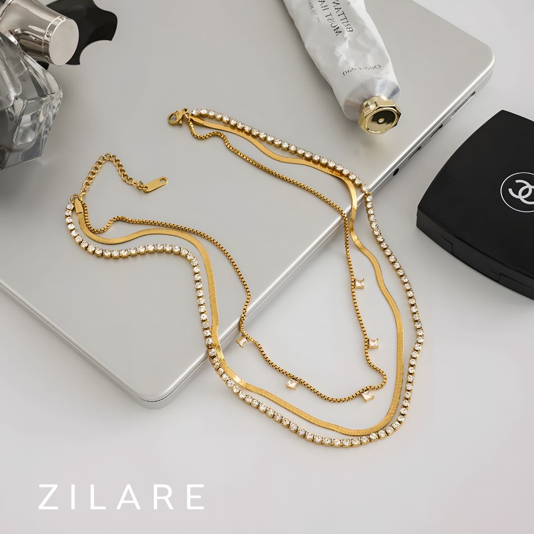 Collar triple baño de oro 18k con diseño luminoso Ailén